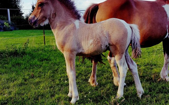 Sehr schicker Falbscheck-Farbwechsler mit schöner Oberlinie und einem harmonischen Gebäude. Mit Sicherheit interessant für den Farbzüchter aber auch als außergewöhnliches Reitpferd wird Glaesir eine gute Figur abgeben.